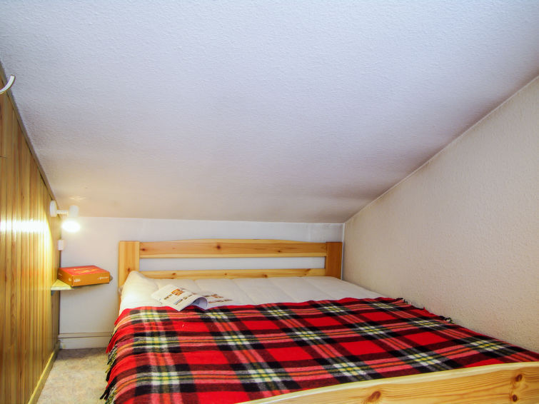 1-Zimmer-Wohnung 25 m2 im 3. Stock. Wohn-/Esszimmer mit 1 Doppeldiwanbett (140 cm, Länge 190 cm), TV. Abgeschrägte Galerie, Deckenhöhe 81 - 168 cm mit 1 franz. Bett (140 cm, Länge 190 cm). Kochnische (2 Kochplatten, Geschirrspüler, Wasserkocher, elektrische Kaffeemaschine, Kombinationsmikrowelle). Bad/WC. E-Heizung. Sicht auf die Berge. Zur Verfügung: Waschmaschine. Internet (Wireless LAN, gratis). Bitte beachten: Nichtraucher-Unterkunft, kein Parkplatz. TV nur FR. Rauchmelder. Anstelle eines abgeschlossenen Schlafzimmers befinden sich manche Schlafplätze in einem offenen Bereich (Galerie, Nische etc.). 74056000392MJ