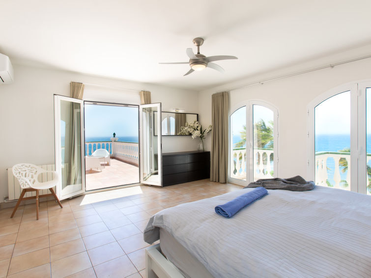 "Atardecer", 5-Zimmer-Villa 230 m2. Komfortabel und schön eingerichtet: Wohn-/Esszimmer mit Kabel-TV (Flachbildschirm), Radio und Stereoanlage. Ausgang zum Gartensitzplatz. 1 Zimmer mit 2 Betten (90 cm, Länge 190 cm), Klimaanlage und Warmluftheizung. 1 Zimmer mit 1 franz. Bett (160 cm, Länge 200 cm), Bad/WC und Klimaanlage. Grosse Küche (Backofen, Geschirrspüler, 4 Induktionskochplatten, Toaster, Wasserkocher, Mikrowelle, Tiefkühler, elektrische Kaffeemaschine). Bad/WC. Obergeschoss: 1 Zimmer mit 1 franz. Bett (140 cm, Länge 190 cm), Klimaanlage. 1 grosses Zimmer mit 1 franz. Bett (180 cm, Länge 200 cm), Klimaanlage, Ventilator und Warmluftheizung. Ausgang zur Terrasse. Dusche/WC. Grosser Gartensitzplatz. Terrassenmöbel, Gartengrill, Liegestühle, Loggia. Herrliche Panoramasicht auf das Meer, die Berge und die Ortschaft. Zur Verfügung: Waschmaschine, Bügeleisen, Kinderhochstuhl, Babybett bis 3 Jahre, Haartrockner. Internet (WLAN, gratis). VUT/MA/51504 // Reg. Nr.: ESFCTU0000290130003448260000000000000000VUT/MA/515040