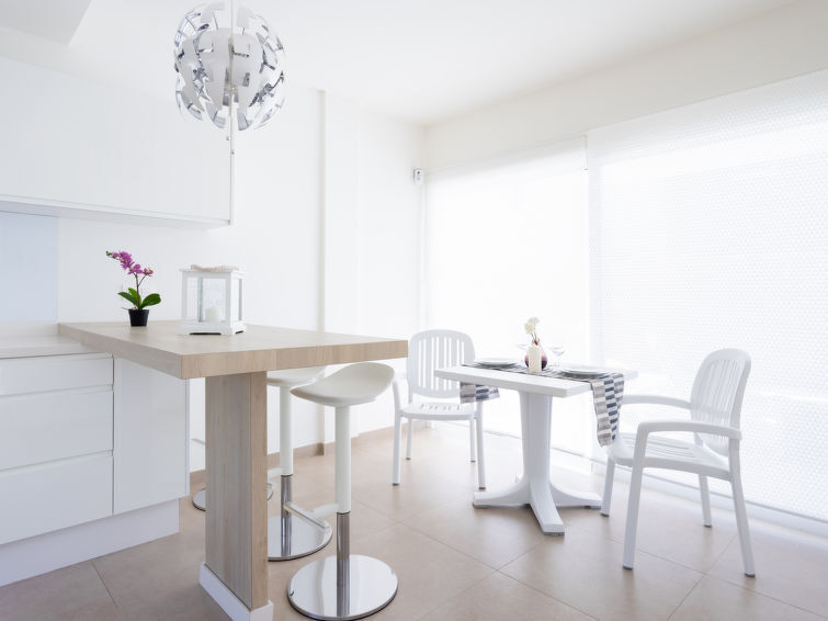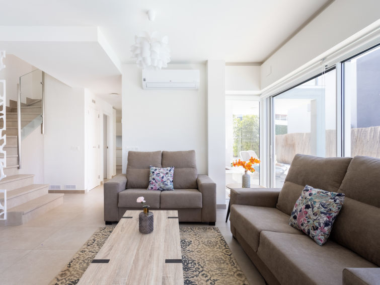 4-Zimmer-Villa 146 m2 auf 2 Stockwerken. Modern und stilvoll eingerichtet: Wohn-/Esszimmer. Ausgang zum Garten, zur Terrasse, zum Schwimmbad. Küche (Backofen, Geschirrspüler, 3 Glaskeramikplatten, Toaster, Wasserkocher, Mikrowelle, Tiefkühler, elektrische Kaffeemaschine). Sep. WC. Keine Heizmöglichkeit. Obergeschoss: (geländerlose Treppe) 1 Zimmer mit 1 Doppelbett (180 cm, Länge 200 cm). 1 Zimmer mit 1 Doppelbett (180 cm, Länge 180 cm) mit 1 Doppelbett (180 cm, Länge 180 cm). Bad/WC, Dusche/WC, Doppelwaschbecken. Terrasse, grosser Garten. Terrassenmöbel, Balkonmöbel, Liegestühle (4). Sicht auf das Meer, das Schwimmbad und die Landschaft. Zur Verfügung: Waschmaschine. Bitte beachten: für Kleinkinder nicht geeignet. Nichtraucher-Haus. VV-38-4-0091666