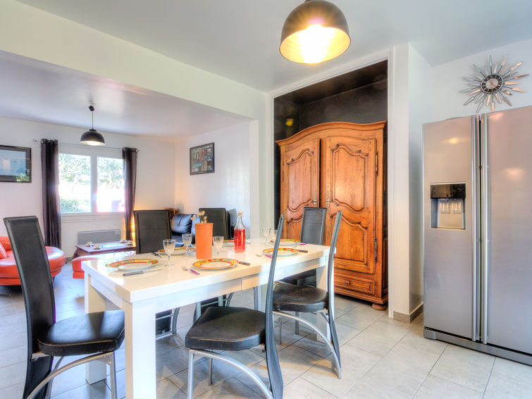 Huis 3-kamers 79 m2. Mooi ingericht: woon-/eetkamer met 1 2-pers divanbed (140 cm, lengte 190 cm), TV (Flatscreen TV). Uitgang naar het terras. 1 kamer met 1 2-pers bed (1 x 140 cm, lengte 190 cm). 1 kamer met 2 bedden (90 cm, lengte 190 cm). Open keuken (afwasmachine, 4 keramische glas kookplaten, magnetron, grill, elektrische koffiemachine). Douche, aparte WC. Elektrische verwarming. Terrasmeubelen, barbecue, ligstoelen (3). Ter beschikking: wasmachine, strijkijzer, kinderbed tot 3 jaar. Internet (Internet (WiFi), gratis). Parkeerplaats. Geschikt voor families. Niet rokers woning. Rookmelders. 40133000040TN