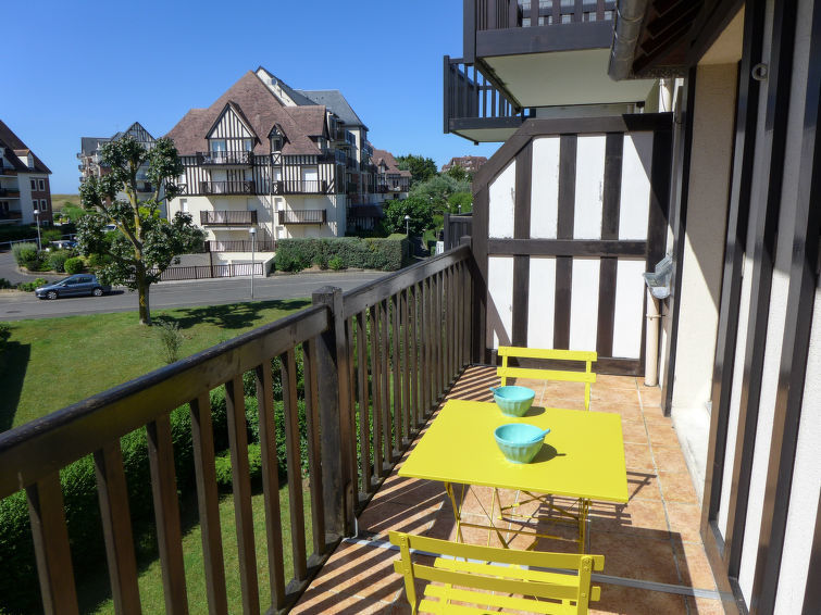 Complex met huizen in een rij en appartementenhuizen in normadische stijl: residentie "Fleur Marine". In de plaats, 1 km van het centrum van Cabourg, 300 m van zee, 300 m van het strand, directe toegang tot het strand. Voor medegebruik: jeu de boules, parkeerplaats (beperkt aantal). Winkel 1 km, levensmiddelenwinkel 1 km, supermarkt 900 m, restaurant 1 km, bar 1 km, fietsverhuur 550 m, bushalte "Plage" 450 m, zandstrand 300 m, thermaalbad "Thalazur" 500 m. Jachthaven 3 km, golfterrein (9 holes) 1.2 km, tennis 700 m, midgetgolf 2.3 km, sportcentrum 500 m. Attracties in de buurt: Deauville 26 km, Honfleur 48 km, Caen 25 km. Geen lift. De afgebeelde foto is slechts een voorbeeld.