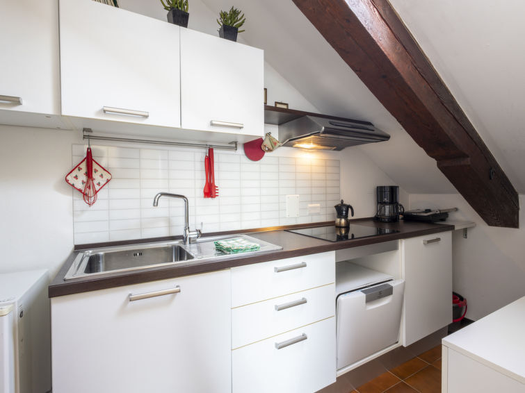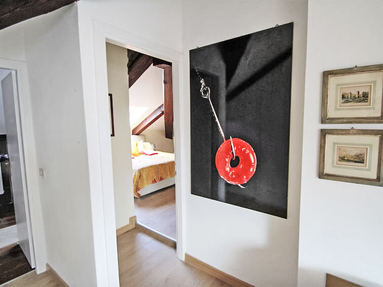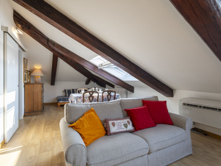 "13", appartement 2-kamers 60 m2 op de 3e verdieping. Afgeschuinde daken, comfortabel ingericht: woon-/eetkamer met 1 2-pers divanbed, eettafel, TV en air-conditioning. 1 2-pers. kamer met afgeschuinde daken. Kleine keuken (afwasmachine, 4 inductiekookplaten, waterkoker, magnetron, elektrische koffiemachine). Douche/bidet/WC. Gas-verwarming. Verwarming alleen beschikbaar van 15.10. tot 15.04. Houten vloeren. Mooi uitzicht op het meer. Ter beschikking: haardroger. Internet (WiFi, gratis). Parkeerplaats nr. 13 (1 Auto). Rookmelders, brandblusser, geen lift. IT103033C2XMJI7FFX