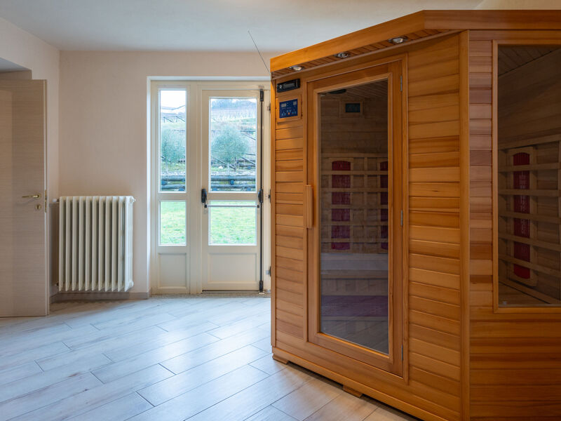 17-kamers cottage op 3 verdiepingen. Smaakvol ingericht: woon-/eetkamer met open haard, eettafel en TV. Uitgang naar het terras. Salon met open haard, aparte WC en TV. Uitgang naar de tuin. Woon-/slaapkamer met 1 2-pers divanbed, eettafel, kookhoek en TV. Uitgang naar de tuin. 1 2-pers. kamer met douche/bidet/WC. Keuken (oven, afwasmachine, 5 kookpitten (vlammen), pizzaoven). Douche/bidet/WC. Bovenverdieping: woon-/slaapkamer met 1 2-pers divanbed, eettafel, kookhoek en TV. Uitgang naar het balkon. Woon-/slaapkamer met 1 2-pers divanbed, eettafel, kookhoek en TV. Uitgang naar het balkon. Woon-/slaapkamer met 1 2-pers divanbed, eettafel, kookhoek en TV. Woon-/slaapkamer met 1 2-pers divanbed, eettafel, kookhoek en TV. 4 2-pers. kamers. Open galerij met afgeschuinde daken met 1 2-pers bed. Open galerij met afgeschuinde daken met 1 2-pers bed. 4 douche/bidet/WC's. Zolderverdieping: (wenteltrap) woon-/eetkamer met 2 2-pers divanbedden, open haard, eettafel en TV. Uitgang naar het terras. 2 2-pers. kamers met afgeschuinde daken, hoogte van het plafond 160 - 270 cm. Kookhoek (4-pits kookplaat, oven, afwasmachine, magnetron, elektrische koffiemachine). Douche/bidet/WC. Gas-verwarming. Verwarming alleen beschikbaar van 15.10. tot 15.04. Balkon, 2 terrassen, gedeeltelijk overdekt. Ter beschikking: wasmachine, kinderbed tot 2 jaar, haardroger. Internet (WiFi, gratis). Maximaal 1 huisdier/hond toegestaan. Rookmelders, brandblusser. IT005060B54CFBNQE4
