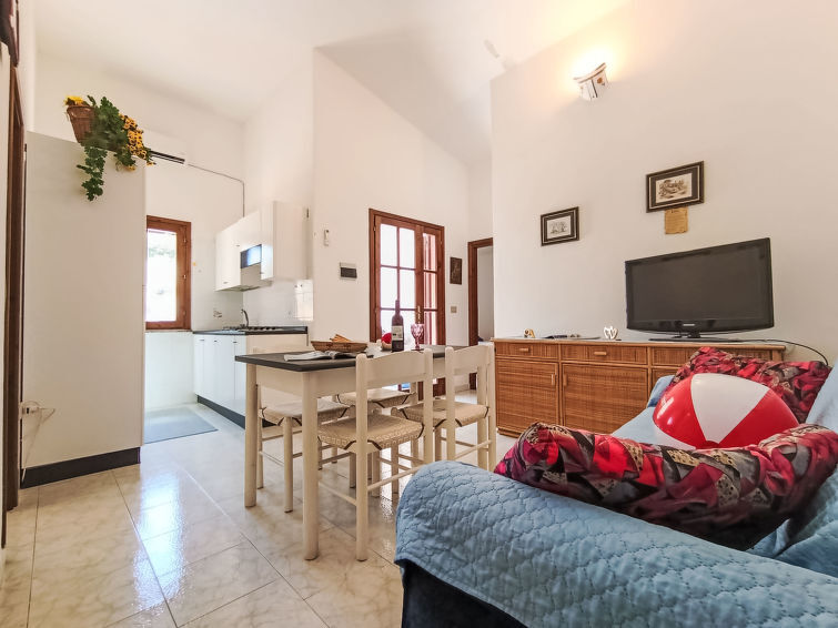 "Resi", appartement 3-kamers op verhoogde begane grond. Comfortabel en gezellig ingericht: woon-/eetkamer met eettafel, TV, air-conditioning en heteluchtverwarming. 2 2-pers. kamers. Kookhoek (oven, afwasmachine, 4 kookpitten (vlammen), broodrooster, waterkoker, elektrische koffiemachine). Douche/bidet/WC. Boiler. Verwarming niet in alle ruimtes. Balkon. Balkonmeubilair, barbecue, ligstoelen. Ter beschikking: wasmachine, strijkijzer, haardroger. Internet (WiFi, gratis). Parkeerplaats (omheind). Rookvrij huis. Rookmelders, brandblusser. IT090091C2000S0000