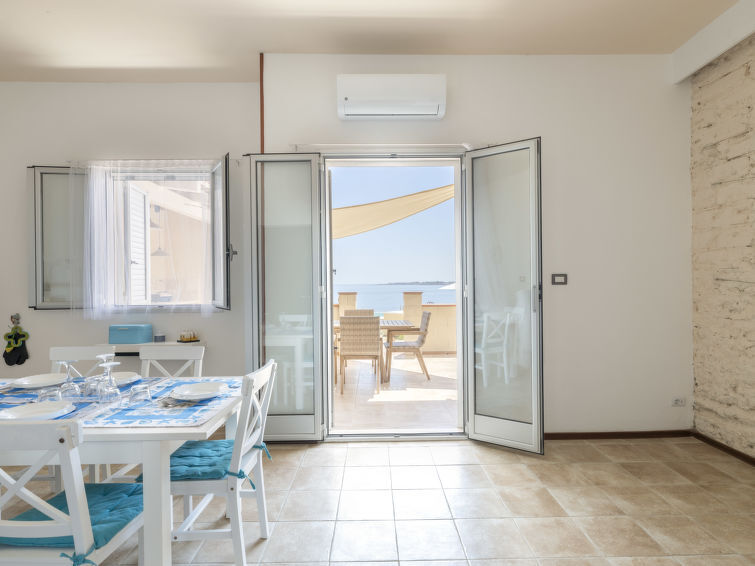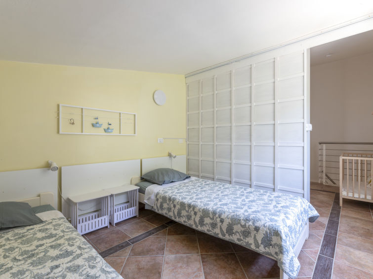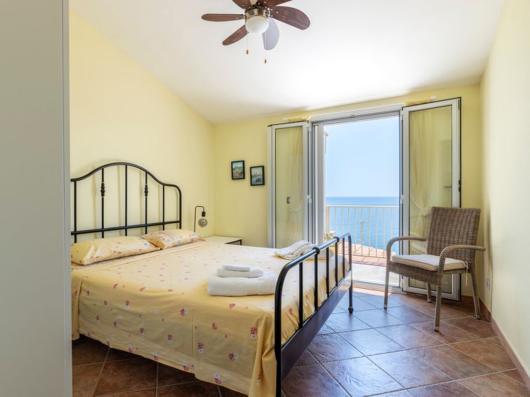 "Norbert", halfvrijstaand huis 4-kamers 75 m2 op 2 verdiepingen. Comfortabel en mooi ingericht: woonkamer met TV (Flatscreen TV), ventilator. Groot keuken (afwasmachine, 4 keramische glas kookplaten, broodrooster, waterkoker, magnetron, elektrische koffiemachine, combimagnetron) met eettafel, air-conditioning en heteluchtverwarming. Uitgang naar het terras. Douche/WC. Boiler (80 liter). Bovenverdieping: (wenteltrap) hal met air-conditioning en heteluchtverwarming. Uitgang naar het terras. 2 2-pers. kamers, elke kamer heeft air-conditioning en heteluchtverwarming. Uitgang naar het balkon. 1 kamer met afgeschuinde daken met gordijn hoogte van het plafond 140 - 220 cm met 2 bedden. Douche/bidet/WC. Verwarming, heteluchtverwarming, boiler (50 liter). Verwarming alleen beschikbaar van 01.12. tot 31.03, Verwarming niet in alle ruimtes. Balkon 8 m2, terras 13 m2, terras 18 m2. Terrasmeubelen, barbecue, ligstoelen (4). Zeer mooi uitzicht op zee. Ter beschikking: wasmachine, kluis, strijkijzer, klamboe, kinderstoel, kinderbed tot 2 jaar (extra), haardroger. Internet (Internet (WiFi), gratis). Parkeerplaats (2 Auto's). Rookmelders, brandblusser. IT089017C2F2EVGFHH
