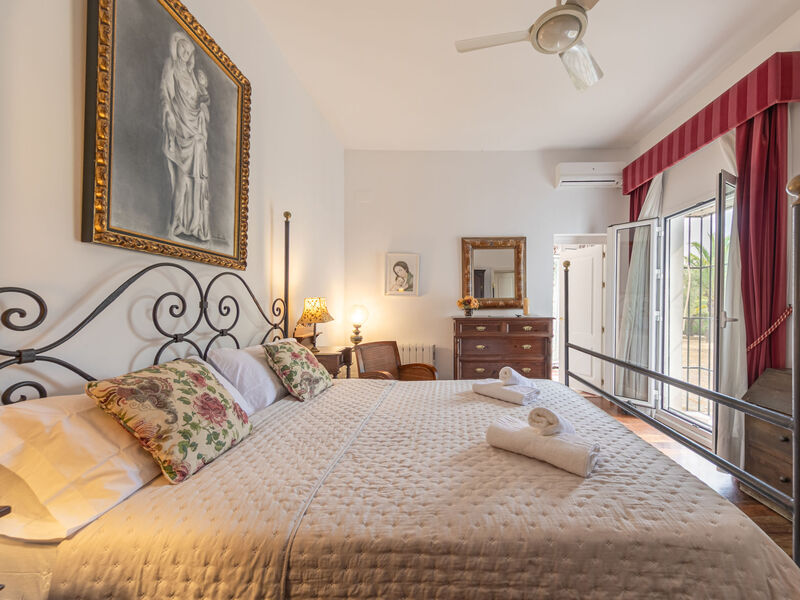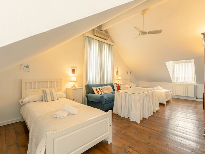 "Las Codornices", villa 11-kamers 500 m2 op 3 verdiepingen. Doelmatig en comfortabel ingericht: groot woon-/eetkamer met open haard, Digitale TV, Flatscreen TV, radio, CD-speler en DVD. 2 kamers, elke kamer heeft 1 2-pers bed (150 cm, lengte 190 cm), bad/WC. 2 kamers, elke kamer heeft 2 bedden (90 cm, lengte 190 cm). 1 kamer met 1 bed (90 cm, lengte 190 cm). Groot keuken (oven, afwasmachine, 4 keramische glas kookplaten, broodrooster, waterkoker, magnetron, diepvriezer, elektrische koffiemachine). Douche/WC. Bovenverdieping: 1 kamer met 1 2-pers bed (150 cm, lengte 190 cm). 1 kamer met 2 bedden (90 cm, lengte 190 cm), 1 x 2 stapelbedden (90 cm, lengte 190 cm). Bad/WC. 2e Verdieping: Erker. 3e Verdieping: groot woonkamer met bibliotheek, Digitale TV en Flatscreen TV. Keuken (oven, afwasmachine, 4 keramische glas kookplaten, waterkoker, magnetron, diepvriezer, elektrische koffiemachine). Bad/bidet/WC. Vloerverwarming. Zolderverdieping: 1 kamer met 1 2-pers bed (150 cm, lengte 190 cm). 1 kamer met 2 bedden (90 cm, lengte 200 cm), 1 2-pers divanbed. Bad/bidet/WC. Air-conditioning, heteluchtverwarming. Tuin. Barbecue, ligstoelen. Ter beschikking: wasmachine, strijkijzer, kinderstoel, kinderbed tot 2 jaar, haardroger. Internet (WiFi, gratis). Geschikt voor families. Rookvrij huis. Maximaal 1 huisdier/hond toegestaan. Geen interne verbinding tussen de aparte wooneenheden. VTAR/SE/00682