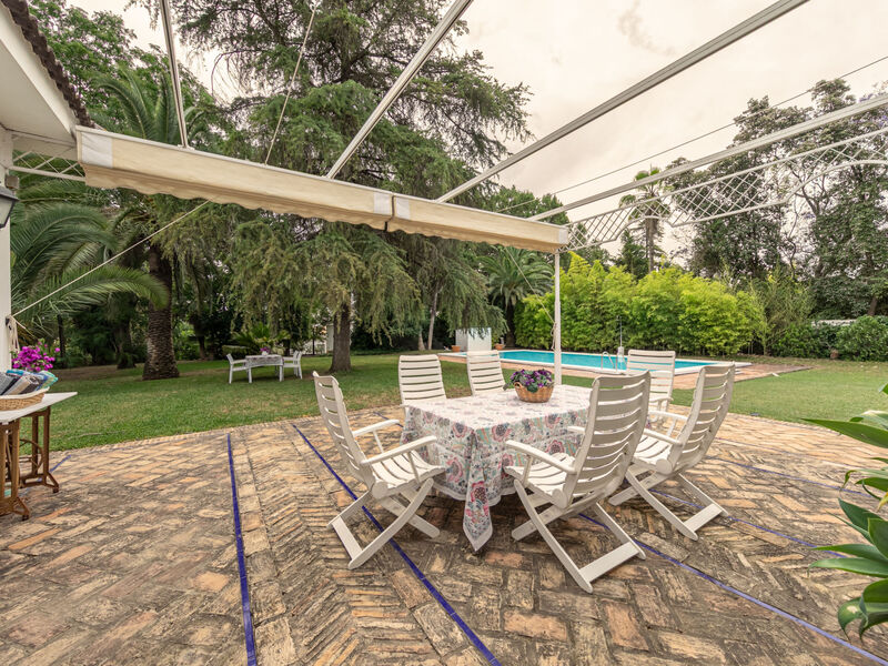 Comfortabele villa "Las Codornices". Aan de rand van de plaats Sanlúcar la Mayor, geïsoleerde, rustige, zonnige ligging. Voor alleengebruik: tuin 9.000 m2 met gazon en bomen, openluchtzwembad (12 x 6 m, 170 - 185 cm diepte, seizoensgebonden beschikbaarheid: 01.Jan. - 31.Dec.). Buitendouche, poolhouse, parkeerplaats (voor 10 auto's) bij het huis. Levensmiddelenwinkel 2 km, supermarkt 2 km, restaurant 2 km, bakkerij 2 km, bushalte 2 km, treinstation 2 km, zandstrand 60 km. Jachthaven 80 km, golfterrein (18 holes) 10 km, tennis 2 km. Attracties in de buurt: Sevilla 19 km, Aldea del Rocío 50 km. Wandelgebied Parque de Doñana 50 km, Corredor Verde del Río Guadiamar 2 km. De eigenaar accepteert geen jeugdgroepen.