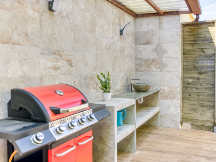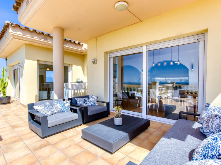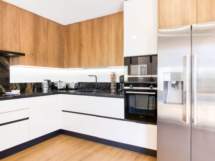 Villa 6-kamers 318 m2 op 3 verdiepingen. Ruim en licht, modern en stijlvol ingericht: woon-/eetkamer met eettafel, Sat-TV en Digitale TV (Flatscreen TV). Uitgang naar het terras, naar het zwembad. Groot, open keuken (oven, afwasmachine, 3 inductiekookplaten, broodrooster, waterkoker, magnetron, diepvriezer, elektrische koffiemachine). Aparte WC. Souterrain: (buitentrap) woon-/eetkamer met ventilator. Uitgang naar het terras. 1 kamer met 1 2-pers bed (160 cm, lengte 190 cm), air-conditioning, ventilator en heteluchtverwarming. 1 kamer met 2 bedden (90 cm, lengte 190 cm), ventilator. Kookhoek (waterkoker, magnetron). Douche, aparte WC. Bovenverdieping: 1 kamer met 2 bedden (90 cm, lengte 190 cm), air-conditioning, ventilator en heteluchtverwarming. 1 kamer met 1 2-pers bed (160 cm, lengte 190 cm), air-conditioning, ventilator en heteluchtverwarming. Bad/douche/WC. 2e Verdieping: 1 groot kamer met 1 2-pers bed (180 cm, lengte 190 cm), douche/WC, air-conditioning, ventilator en heteluchtverwarming. Uitgang naar het terras. Groot terras. Terrasmeubelen, barbecue, ligstoelen. Mooi panoramazicht op zee en de bergen. Ter beschikking: wasmachine, strijkijzer, haardroger. Internet (WiFi, gratis). Parkeerplaats bij het huis. Rookvrij huis. TV alleen FR, DE, ES. Geen lift. HUTG-010952