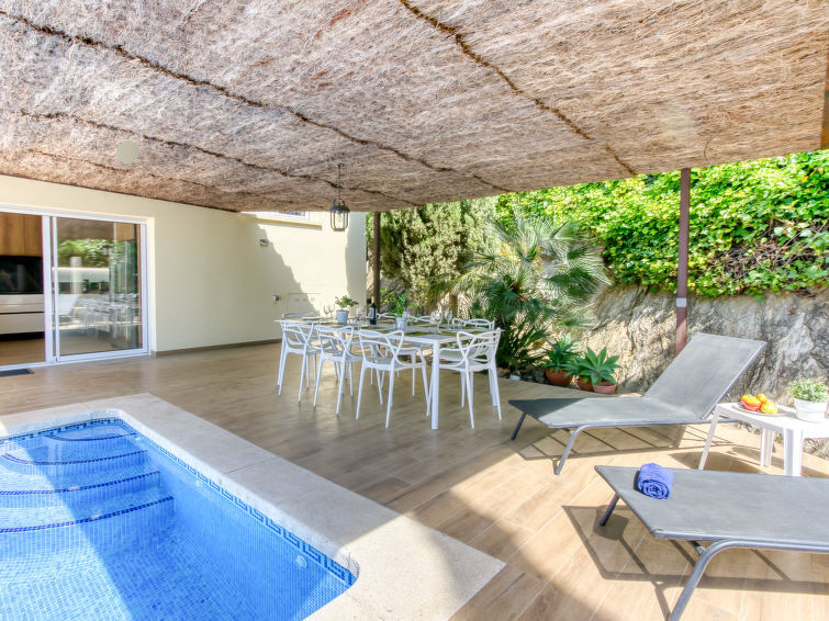 Groot, moderne, gezellige eengezinswoning "Belle vue". In de plaats Palau Savardera, 8 km van het centrum van Roses, rustige, zonnige ligging villa wijk, gebied met weinig verkeer, 7 km van zee, 7 km van het strand, op het zuiden. Voor alleengebruik: groot tuin op verschillende niveaus (omheind) met planten en bomen, openluchtzwembad hoekig (8 x 4 m, 100 - 200 cm diepte, seizoensgebonden beschikbaarheid: 01.Mei. - 30.Okt.) met trap. Terras, tuinmeubelen, barbecue, parkeerplaats (voor 3 auto's) op het terrein. Oplaadstation. Levensmiddelenwinkel 3 km, supermarkt 3 km, restaurant, bar, café 500 m, bushalte "Moventis estació bus Roses" 8.8 km, treinstation "Estación Tren Vilajuiga" 6 km, zandstrand "Roses" 9 km. Jachthaven 9 km, golfterrein (18 holes) 12 km, zeilschool 9 km, tennis 3 km, manege 5 km. Attracties in de buurt: Zona de padel con bar y restaurante 500 m, Parque Acuático Roses Aquabrava 3 km, Túnel del viento y Skydive Empuriabrava 12 km, Cadaqués 17 km, Museo Dalí Figueres 22 km, Castillo y festival de Perelada 15 km. Auto noodzakelijk. Groepen jongeren uitsluitend op aanvraag. De sleuteloverdracht vindt plaats bij het agentschap Interhome in Empuriabrava.