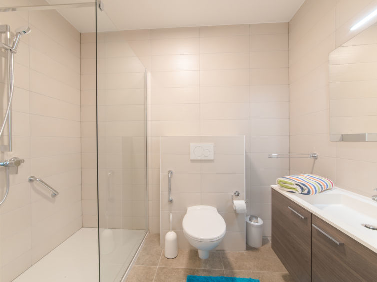 Appartement 3-kamers 60 m2 op de 2e verdieping. Comfortabel en gezellig ingericht: hal met aparte WC. Woon-/eetkamer met eettafel, TV, internationale TV-zenders, Flatscreen TV en verwarming. Uitgang naar het terras, op het westen. 2 2-pers. kamers, elke kamer heeft 1 2-pers bed (2 x 80 cm, lengte 200 cm). Uitgang naar het balkon, op het oosten. Open keuken (afwasmachine, 4 keramische glas kookplaten, elektrische koffiemachine, combimagnetron). Douche/WC. Balkon 5 m2, klein balkon 3 m2. Balkonmeubilair. Ter beschikking: Internet (Internet (WiFi), gratis). Let op: rookvrij huis.
