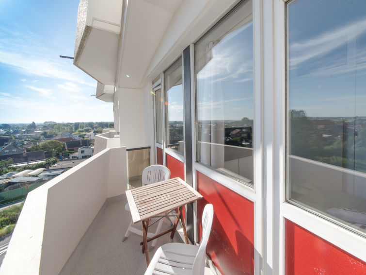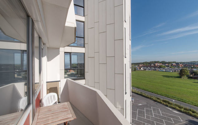 Kindvriendelijk vakantiepark "Mimosa", van 8 verdiepingen, omgeven door velden. Aan de rand van de plaats, 2 km van het centrum van De Haan, gebied met weinig verkeer, 1 km van zee, 1 km van het strand. Voor medegebruik: terrein 10 ha (omheind). Tennisbaan, basketbal, jeu de boules, volleybalveld, barbecue, kinderspeelplaats. In het complex: lift. Parkeerplaats bij het huis. Supermarkt 3 km, restaurant 500 m, bakkerij 400 m, tram "de Haan Vosseslag" 700 m, bushalte "Vosseslag" 700 m. Golfterrein 300 m. Attracties in de buurt: Brugge 17 km, Plopsaland 50 km, Gent 65 km, Sea Life Marine Park 13 km, Hof Ter Meulen 4 km, ‘t Reigershof 5 km. Let op: lift tot de 7e verdieping.