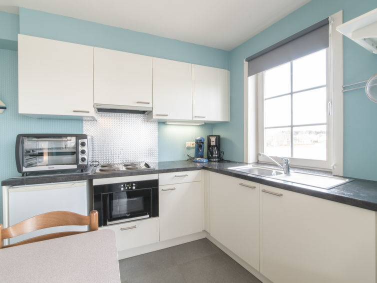 Moderne residentie "Duinenzicht". 700 m van zee, 600 m van het strand. In het complex: lift. Openbare parkeerplaatsen 50 m extra. Supermarkt 3 km, restaurant 50 m, bakkerij 10 m, café 50 m, fietsverhuur 3 km, tram "Klemskerke" 200 m, station "Oostende" 10 km, openluchtzwembad 12 km, overdekt zwembad 2.5 km, thermaalbad "Thermae Palace" 12 km. Jachthaven 12 km, golfterrein (18 holes) 7 km, midgetgolf 3.5 km. Attracties in de buurt: Familiepark De Sierk 700 m, Oostende 8 km, Blankenberge 12 km, Brugge 19 km, Sea Life Blankenberge 13 km, Plopsaland De Panne 45 km. Wandelgebied Beeweg 3 km, Landerijenpad 3 km, Spuikompad 3 km. Groepen jongeren niet toegestaan.
