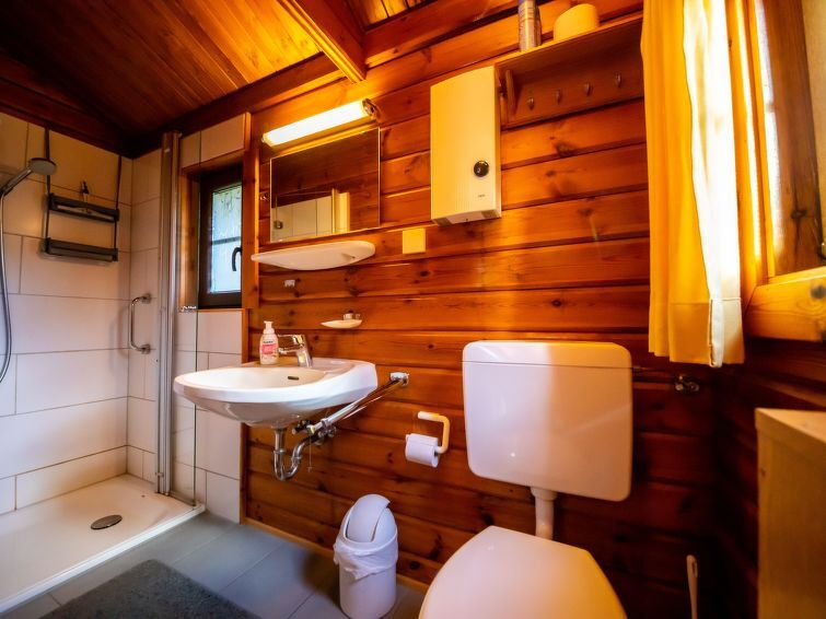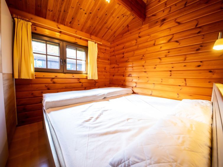 Bungalow 3-kamers 52 m2. Rustiek en gezellig ingericht: woon-/eetkamer met Kabel-TV. Uitgang naar het terras. 1 kamer met 1 2-pers bed (2 x 100 cm, lengte 200 cm). 1 kamer met 2 bedden (90 cm, lengte 200 cm). Open keuken (oven, afwasmachine, 4 keramische glas kookplaten, broodrooster, magnetron, diepvriezer, grill, elektrische koffiemachine) met eettafel. Douche/WC. Gas-verwarming. Houten vloeren. Terras 12 m2. Terrasmeubelen, bergruimte. Uitzicht op het bos. Ter beschikking: Internet (Internet (WiFi), gratis). Rookvrij huis. Maximaal 2 huisdieren/honden toegestaan. Rookmelders, brandblusser.