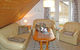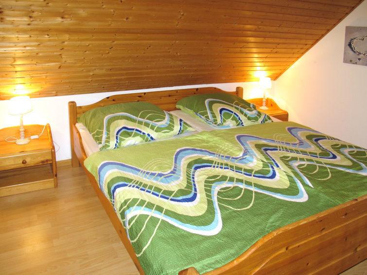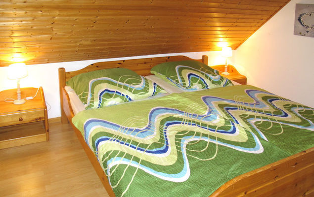 Appartement 3-kamers 55 m2 op 2 verdiepingen, op de bovenverdieping. Gezellig ingericht: woon-/eetkamer met afgeschuinde daken met Sat-TV (Flatscreen TV), radio en CD-speler. Uitgang naar het balkon. 1 kamer met afgeschuinde daken met 1 2-pers bed (2 x 90 cm, lengte 200 cm). Kookhoek (4-pits kookplaat, oven, broodrooster, waterkoker, elektrische koffiemachine). Douche/WC. Zolderverdieping: (steile trap), 1 kamer met afgeschuinde daken met 3 bedden (90 cm, lengte 200 cm). Balkonmeubilair. Let op: niet rokers woning. Maximaal 1 huisdier/hond toegestaan.