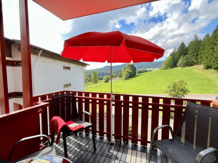 Flatgebouw "EX-Kurhotel Schluchsee", omgeven door bomen en weiden. Boven Schluchsee, 500 m van het centrum, 100 m van de bosrand, 500 m van het meer. Voor medegebruik: groot tuin met gazon en bomen, overdekt zwembad verwarmd (14 x 5 m, 130 - 140 cm diepte, openingstijden zwembad: 07:00-13:00 en 15:00-22:00). Douche/WC bij het zwembad, terras, tuinmeubelen. In het complex: salon, internetaansluiting, Internet (WiFi), sauna (extra). Fitnessruimte (extra). Biljart, speelkamer, tafelvoetbal, lift, berging voor ski's, centrale verwarming, wasmachine (extra), droger (voor medegebruik, extra). Parkeerplaats bij het huis, gemeenschappelijke garage bij het huis. Winkel, levensmiddelenwinkel, supermarkt 600 m, winkelcentrum 10 km, restaurant, bakkerij, café 600 m, fietsverhuur 500 m, centrum te voet bereikbaar in 10 minuten, bushalte 50 m, treinstation 800 m, zandstrand 500 m, 300 m, openluchtzwembad 800 m, meer (zwemmen) 500 m, meer Schluchsee 500 m. Zeilschool 800 m, tennis, tennishal 200 m, wandelroutes 1 m vanaf het huis, fietspad 50 m, skilift 2 km, rodelbaan 50 m, langlaufloipe 200 m, kinderspeelplaats 50 m, Vismogelijkheden 3 km. Attracties in de buurt: Staatsbrauerei Rothaus 10 km, Schwarzwaldhaus der Sinne 10 km, Dom St. Blasien 15 km, Badeparadies Titisee-Neustadt 25 km, Freiburg 55 km, Spasspark Hochschwarzwald 500 m. Bekende skigebieden kunnen gemakkelijk worden bereikt: Feldberg / Hochschwarzwald 20 km. Bekende meren kunnen gemakkelijk worden bereikt: Schluchsee 500 m, Titisee 25 km. Wandelgebied Schluchseer Jägersteig 1 km, Rothauser Land 8 km, Schluchseegebiet / Feldberggebiet.