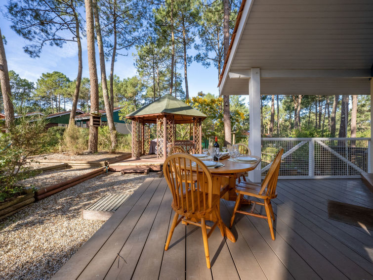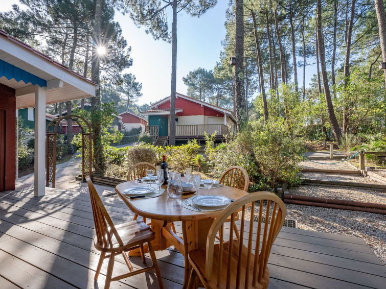 Residentie "Golf Loisirs". Aan de rand van de plaats, 2 km van het centrum, 2 km van zee, 5 km van het meer, 2 km van het strand. Voor medegebruik: openluchtzwembad (13 x 17 m, 180 cm diepte, seizoensgebonden beschikbaarheid: 18.Jun. - 18.Sep.). Parkeerplaats op het terrein. Winkel 2 km, supermarkt 2 km, restaurant 700 m, fietsverhuur 300 m, bushalte "Marie Curie" 1.7 km, zandstrand "Plage Sud" 2 km. Golfterrein (18 holes) 500 m, surfschool 3 km, zeilschool 6 km, tennis 300 m, manege 1.5 km, fietspad 200 m. Attracties in de buurt: Bordeaux 60 km, Dune du Pyla 70 km, saint Emilion 60 km, Cap Ferret 70 km. De eigenaar accepteert geen jeugdgroepen.