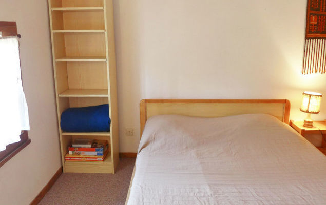 Huis in een rij 1-kamer 38 m2 op 2 verdiepingen. Woon-/eetkamer met 1 2-pers divanbed en TV. Kookhoek (2-pits kookplaat, oven, magnetron, elektrische koffiemachine). Bad/WC. Bovenverdieping: galerij met 1 2-pers bed (160 cm, lengte 200 cm). Terras 12 m2. Terrasmeubelen, ligstoelen. Ter beschikking: strijkijzer. Internet (Internet (WiFi), extra). Let op: 1 huisdier/hond toegestaan. Rookmelders.