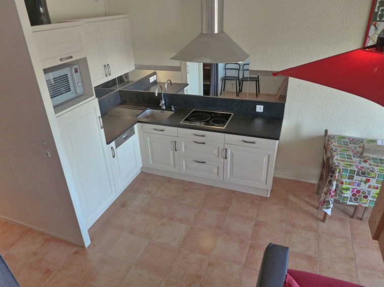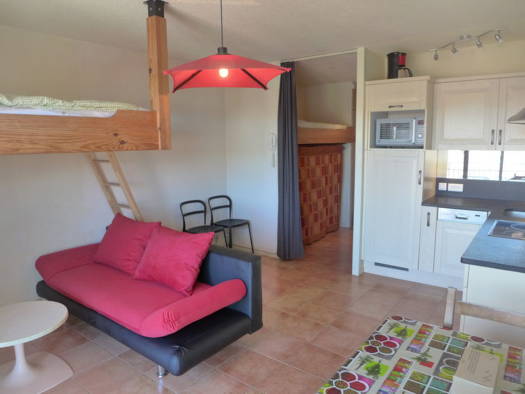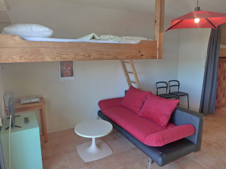 Appartement 1-kamer 29 m2 op de 2e verdieping. Woon-/eetkamer met 1 2-pers bed (135 cm), Flatscreen TV en stereo-installatie. Slaapnis met 1 bed (90 cm, lengte 190 cm). Kookhoek (oven, afwasmachine, 3 keramische glas kookplaten, magnetron, grill, elektrische koffiemachine). Bad/WC. Klein balkon 5 m2, op het oosten gelegen. Terrasmeubelen. Ter beschikking: wasmachine. Internet (Internet (WiFi), extra). Garage nr. 10. Let op: niet rokers woning. Rookmelders. Opgelet: de bedden zijn verhoogd gelegen en bereikbaar via een ladder. Het balkon ligt aan de straatkant. De keuken is gerenoveerd in 2008. 40065000013I1