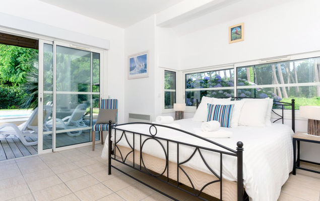 "Club Royal Océan La Prade (MLP542)", huis 5-kamers 145 m2. Mooi en smaakvol ingericht: woon-/slaapkamer met 1 2-pers divanbed, open haard, eettafel, Sat-TV en DVD. Uitgang naar het terras. 1 kamer met 1 2-pers bed en douche. 1 kamer met 1 2-pers bed en bad/WC. Uitgang naar het terras. 1 kamer met 2 slaapplaatsen. 1 kamer met 2 bedden. Open keuken (oven, afwasmachine, 4 keramische glas kookplaten, broodrooster, waterkoker, magnetron, diepvriezer, elektrische koffiemachine). Douche, aparte WC. Elektrische verwarming. Terras 50 m2 gedeeltelijk overdekt. Terrasmeubelen. Ter beschikking: wasmachine, droger, strijkijzer, kinderstoel, kinderbed. Internet (Internet (WiFi), gratis). Parkeerplaats. Let op: rookvrij huis. Maximaal 2 huisdieren/honden toegestaan. Rookmelders, brandblusser.