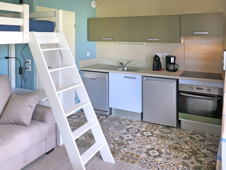 "Les Sables d’Or (VIB310)", appartement 1-kamer 20 tot 32 m2. Het objekt is geschikt voor 2 volwassenen. Modern en gezellig ingericht: woon-/slaapkamer met 1 2-pers divanbed en 1 x 1 stapelbedden (90 cm), eettafel, TV, radio, CD-speler en DVD. Uitgang naar het balkon, naar het terras. Open keuken (oven, afwasmachine, 4 keramische glas kookplaten, broodrooster, waterkoker, magnetron, elektrische koffiemachine). Douche/WC. Elektrische verwarming. Balkon of terras. Balkonmeubilair, ligstoelen (2). Ter beschikking: wasmachine, strijkijzer, kinderstoel, kinderbed (extra), haardroger. Internet (Internet (WiFi), gratis). Let op: rookmelders.