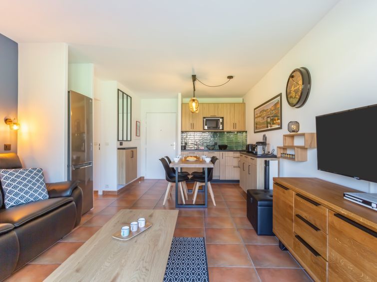 "Résidence Odalys", appartement 3-kamers 52 m2, op de begane grond. Comfortabel en mooi ingericht: woon-/eetkamer met panoramavenster met TV (Flatscreen TV), elektrische verwarming. Uitgang naar het terras. 1 kamer met 1 2-pers bed (1 x 140 cm, lengte 190 cm). 1 kamer met 1 x 2 stapelbedden (90 cm, lengte 190 cm). Open keuken (oven, afwasmachine, 2 inductiekookplaten, broodrooster, waterkoker, magnetron, elektrische koffiemachine, pads voor de koffiemachine (Nespresso)). Badkamer, aparte WC. Elektrische verwarming. Groot terras 17 m2. Terrasmeubelen. Uitzicht op. Ter beschikking: strijkijzer, kinderbed, haardroger. Internet (Internet (WiFi), gratis). Parkeerplaats nr. 363 (overdekt). Rookmelders. 6448300187058