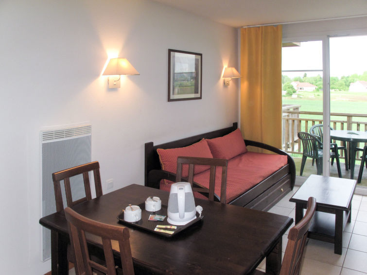"Les Allées du Green (BAE251)", appartement 2-kamers 45 m2, op de begane grond. Doelmatig ingericht: woon-/slaapkamer met 1 2-pers divanbed, eettafel en TV. Uitgang naar het balkon, naar het terras. 1 kamer met 2 slaapplaatsen. Slaapnis, zonder ramen met 1 x 2 stapelbedden. Kookhoek (afwasmachine, 4 keramische glas kookplaten, waterkoker, magnetron, elektrische koffiemachine). Badkamer, aparte WC. Elektrische verwarming. Balkon of terras. Terrasmeubelen, balkonmeubilair. Ter beschikking: kinderstoel, kinderbed. Internet (Internet (WiFi), gratis). Let op: niet rokers woning. Maximaal 1 huisdier/hond toegestaan. Rookmelders. Vanwege het Coronavirus (COVID-19) neemt deze accommodatie maatregelen om de veiligheid van gasten en personeel te helpen beschermen. Hierdoor kan het gebruik van het zwembad beperkt of niet mogelijk zijn.
