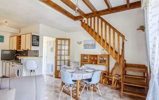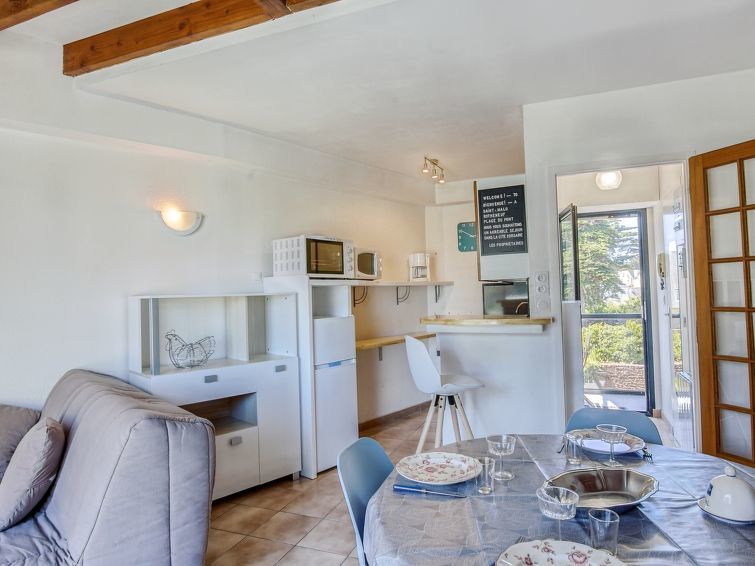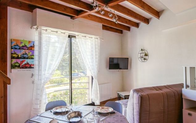 "Belle Rive", appartement 2-kamers 34 m2 op de 1e verdieping. Licht, gedeeltelijk gerenoveerd in 2020, doelmatig en comfortabel ingericht: woon-/eetkamer met TV (Flatscreen TV). Uitgang naar het balkon. Kleine, open keuken (2-pits kookplaat, mini-oven, magnetron, diepvriezer, elektrische koffiemachine). Bovenverdieping: 1 kamer met 1 2-pers bed (1 x 140 cm, lengte 190 cm). Open galerij met 1 2-pers bed (1 x 140 cm, lengte 190 cm). Bad/WC. Elektrische verwarming. Balkon 10 m2. Balkonmeubilair. Ter beschikking: wasmachine. Internet (Internet (WiFi), gratis). Parkeerplaats nr. 1 (1 Auto). Let op: niet rokers woning. TV alleen FR. Rookmelders. 3528800285758