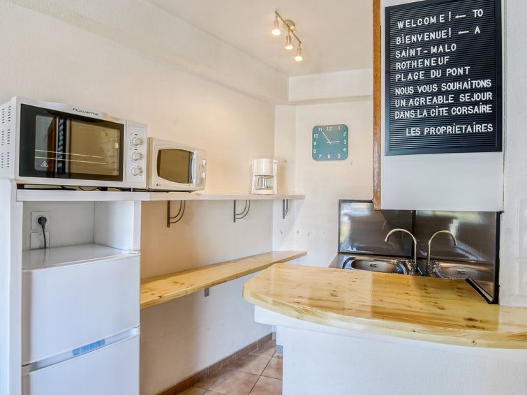 Klein appartementencomplex. Rustige, zonnige ligging, 250 m van zee, 250 m van het strand. In het complex: bergruimte voor fietsen. Supermarkt 700 m, restaurant 900 m, bakkerij 2.6 km, bushalte "Pont/Davier" 100 m, station "TGV St Malo" 4.4 km, veerboot "Gare maritime du Naye" 4.5 km, zandstrand "du pont (plage abritée)" 250 m, overdekt zwembad 4.4 km, thermaalbad "Thermes marins de St Malo" 2.9 km. Surfschool 2.7 km, tennis 400 m. Attracties in de buurt: Grand aquarium de St Malo 3.2 km, Dinan 34 km, Dinard 15 km, Cancale 12 km, Le Mont St Michel 56 km, Nouveau cinéma le Vauban 3 km.