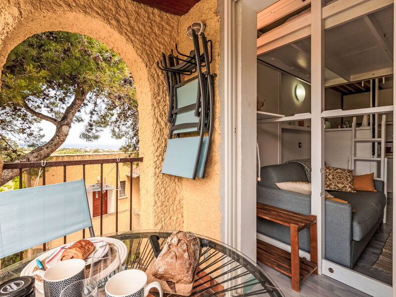 "Casa Maza Corta", studio 1-kamer 20 m2 op de 1e verdieping. Eenvoudig en doelmatig ingericht: woon-/slaapkamer met 1 divanbed en 1 2-pers bed (140 cm, lengte 190 cm), eettafel. Uitgang naar het terras. Woonkeuken (2 inductiekookplaten, broodrooster, waterkoker, magnetron, elektrische koffiemachine). Douche/WC. Elektrische verwarming, air-conditioning. Klein terras overdekt, op het noorden gelegen en op het westen gelegen. Balkonmeubilair. Uitzicht op zee en de tuin. Ter beschikking: wasmachine. Internet (Internet (WiFi)). Parkeerplaats bij het huis. Rookmelders. Aanbod door een particulier volgens art. 155, IV van CGI.