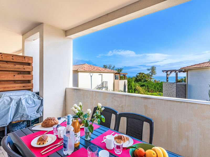 "Mido", appartement 3-kamers 46 m2. Comfortabel ingericht: woon-/eetkamer met 1 divanbed (160 cm, lengte 190 cm), eettafel en TV (Flatscreen TV), air-conditioning. Uitgang naar het terras. 1 kamer met 2 bedden (90 cm, lengte 190 cm), TV (Flatscreen TV). 1 kamer met 1 2-pers bed (140 cm, lengte 190 cm), TV (Flatscreen TV). Woonkeuken (afwasmachine, 4 keramische glas kookplaten, broodrooster, waterkoker, magnetron, elektrische koffiemachine, pads voor de koffiemachine (Tassimo) extra). Douche, aparte WC. Elektrische verwarming. Terras 16 m2, overdekt, op het oosten gelegen. Terrasmeubelen. Uitzicht op zee. Ter beschikking: haardroger. Internet (WiFi). Parkeerplaats (1 Auto). Niet rokers woning. Rookmelders. Aanbod door een particulier volgens art. 155, IV van CGI.