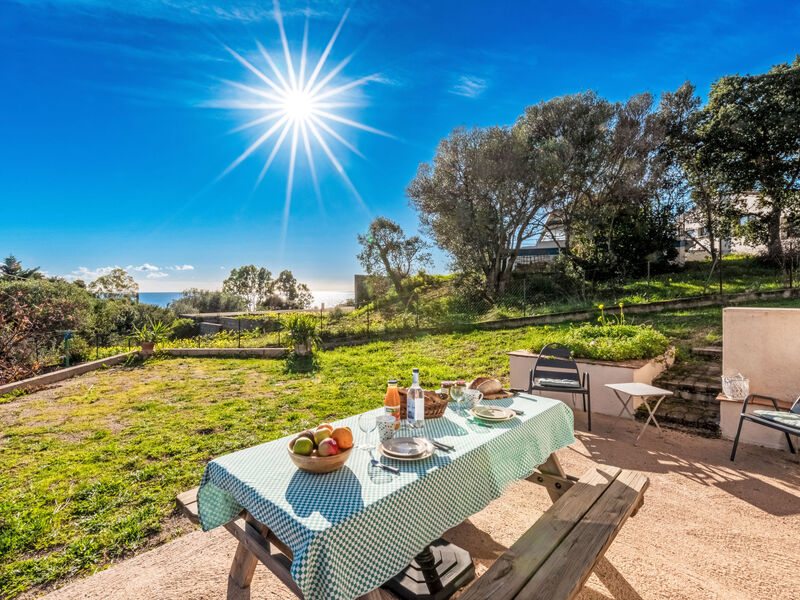 "T1 Gabriello", appartement 1-kamer 45 m2. Comfortabel ingericht: woon-/eetkamer met eettafel en TV (Flatscreen TV), air-conditioning. Uitgang naar het terras. 1 open kamer met gordijn, zonder ramen met 1 2-pers bed (140 cm, lengte 190 cm). Keuken (2 inductiekookplaten, broodrooster, waterkoker, magnetron, elektrische koffiemachine). Douche/WC. Elektrische verwarming. Terras, op het oosten gelegen en op het zuiden gelegen. Terrasmeubelen, barbecue. Uitzicht op zee en de tuin. Ter beschikking: wasmachine, haardroger. Internet (Internet (WiFi)). Parkeerplaats bij het huis. Rookmelders. Aanbod door een particulier volgens art. 155, IV van CGI.