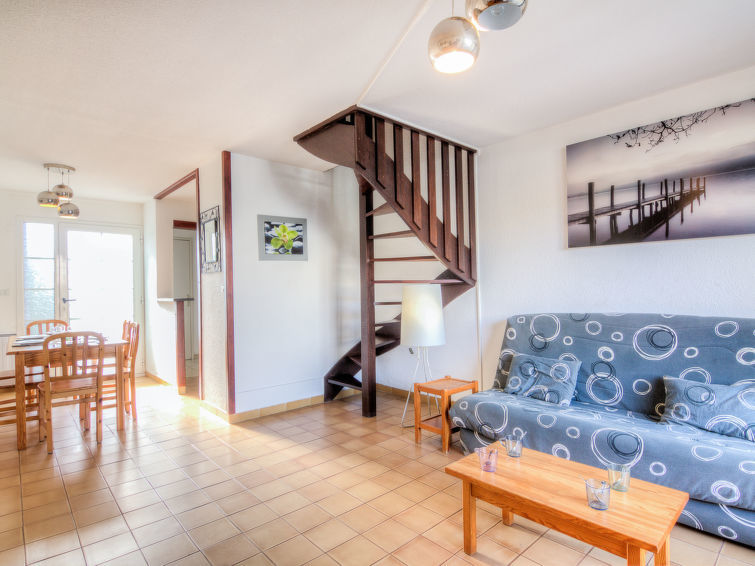Huis in een rij 3-kamers 52 m2 op 2 verdiepingen. Woon-/eetkamer met 1 2-pers divanbed (140 cm, lengte 190 cm), TV. Uitgang naar het terras. Kookhoek (oven, afwasmachine, 2 inductiekookplaten, magnetron). Aparte WC. Bovenverdieping: 1 kamer met 1 2-pers bed (140 cm, lengte 190 cm). Uitgang naar het balkon. 1 kamer met 1 x 2 stapelbedden (90 cm, lengte 190 cm). Douche, aparte WC. Elektrische verwarming. Balkon 5 m2, op het westen gelegen, terras 10 m2, op het westen gelegen. Terrasmeubelen, barbecue. Uitzicht op de haven. Ter beschikking: wasmachine. Internet (Internet (WiFi), extra). Parkeerplaats. Let op: rookmelders.