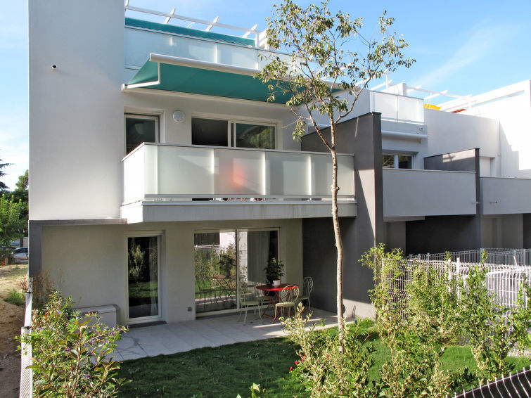 Kleine, mooi residentie "Les Pins Parasols", van 3 verdiepingen, bouwjaar 2015. 8 appartementen in de woning. In het centrum, 600 m van het centrum van Argelès-Plage, 24 km van het centrum van Perpignan, centrale ligging, 250 m van zee. Voor medegebruik: terrein met gazon, openluchtzwembad omheind (8 x 3 m, 140 cm diepte, seizoensgebonden beschikbaarheid: 16.Mei.-19.Sep.). Winkel 200 m, supermarkt 500 m, zandstrand 250 m.