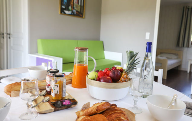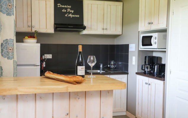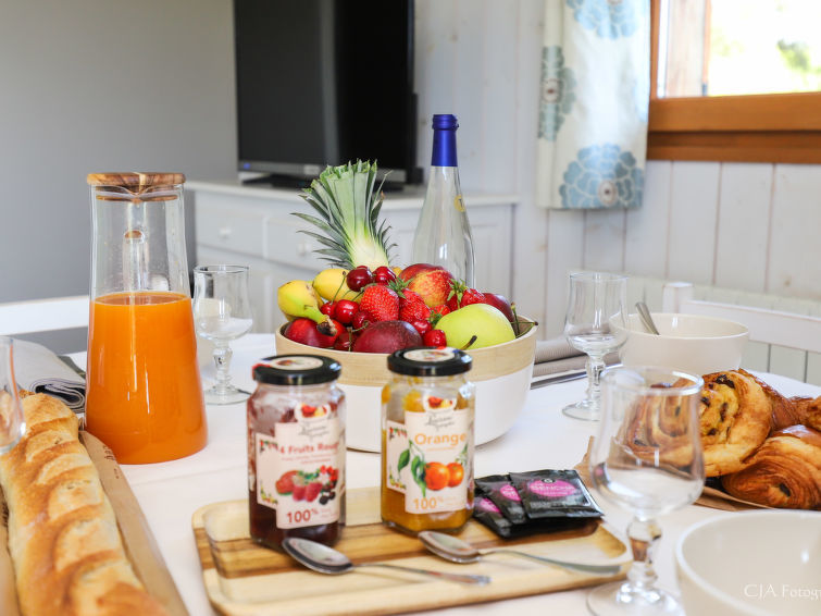 "Chalet T3", bungalow 3-kamers 50 m2. Doelmatig en smaakvol ingericht: woon-/eetkamer met 1 2-pers divanbed (1 x 140 cm, lengte 190 cm), TV (Flatscreen TV). Uitgang naar het terras. 1 kamer met 1 2-pers bed (1 x 160 cm, lengte 200 cm). 1 kamer met 2 bedden (90 cm, lengte 190 cm). Kookhoek (afwasmachine, 4 keramische glas kookplaten, combimagnetron). Badkamer, douche/WC, aparte WC. Terras 14 m2. Terrasmeubelen. Mooi uitzicht op het landschap. Ter beschikking: Internet (Internet (WiFi), gratis). Maximaal 1 huisdier/hond toegestaan.