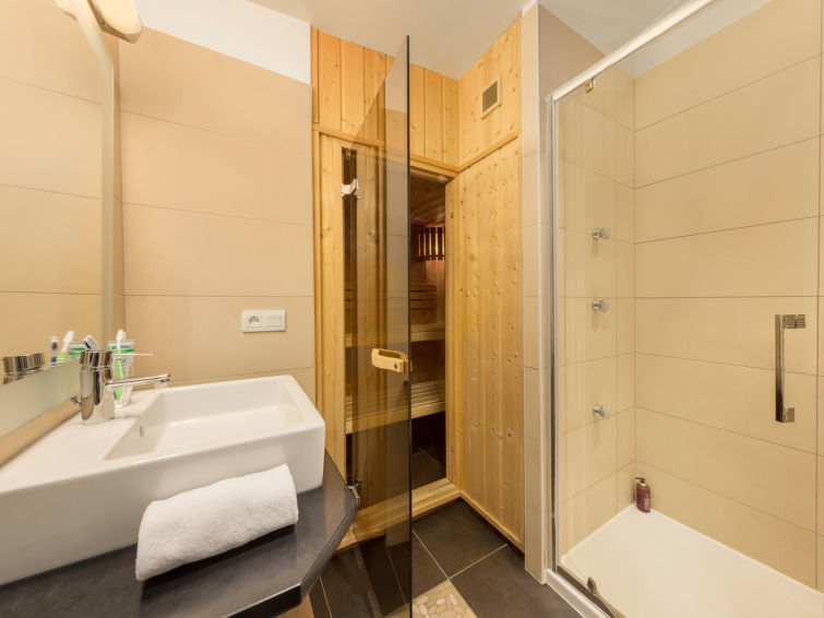 "Cottage VIP Nouveau design", huis in een rij 4-kamers 83 m2. Licht, gerenoveerd, zeer comfortabel en stijlvol ingericht: woon-/eetkamer met open haard, eettafel en TV (Flatscreen TV). Uitgang naar het terras. 1 kamer met 1 2-pers bed en TV. 2 kamers, elke kamer heeft 2 bedden. Open keuken (afwasmachine, 4 keramische glas kookplaten, broodrooster, elektrische koffiemachine, combimagnetron). Bad/WC, 2 douches, aparte WC, hydro massage bad, Sauna. Houten vloeren. Terras. Terrasmeubelen. Ter beschikking: kinderstoel, kinderbed. Internet (Internet (WiFi), gratis). Parkeerplaats. Let op: niet rokers woning. Bij het huurobject gaat het om een typenhuis / een typenappartement.