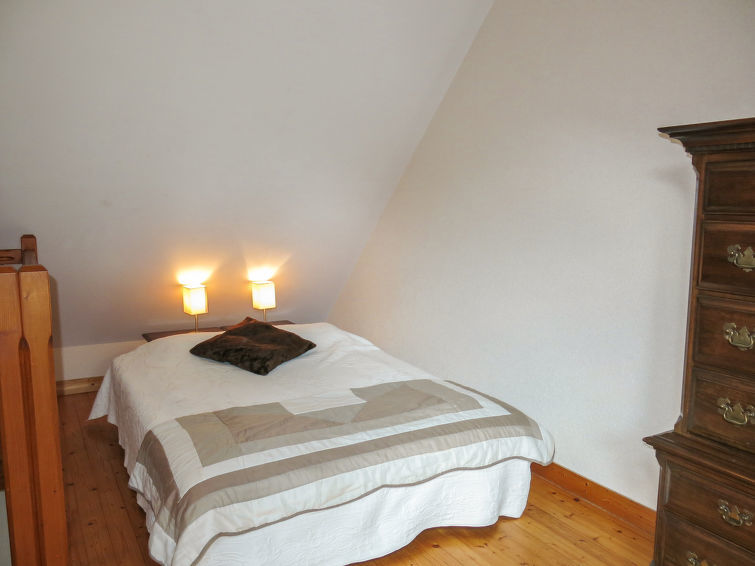 Huis 3-kamers 50 m2 op 2 verdiepingen. Eetkamer met veranda met eethoek, kookhoek en TV (Flatscreen TV). Uitgang naar de tuin. Woon-/slaapkamer met 1 divanbed (80 cm, lengte 190 cm), 1 2-pers divanbed (140 cm, lengte 190 cm), stereo-installatie. Uitgang naar de tuin. Kookhoek (oven, afwasmachine, 4 keramische glas kookplaten, broodrooster, magnetron, elektrische koffiemachine). Douche, aparte WC. Bovenverdieping: 1 open kamer met afgeschuinde daken met hoogte van het plafond 50 - 350 cm met dakraam met 1 divanbed (80 cm, lengte 190 cm), 1 2-pers bed (140 cm, lengte 190 cm). Gas-verwarming. Terrasmeubelen. Ter beschikking: wasmachine, droger. Internet (Internet (WiFi), gratis). Let op: niet rokers woning. De bedden van 80 cm zijn 1-pers. slaapbanken. De wasmachine en wasdroger bevinden zich in een klein gebouw waarin zich ook een aparte douche/WC bevindt. Het is mogelijk om een kleine piano ("Baldwin") te gebruiken, deze bevindt zich in het huis van de eigenaar (alleen te reserveren door ervaren pianisten).
