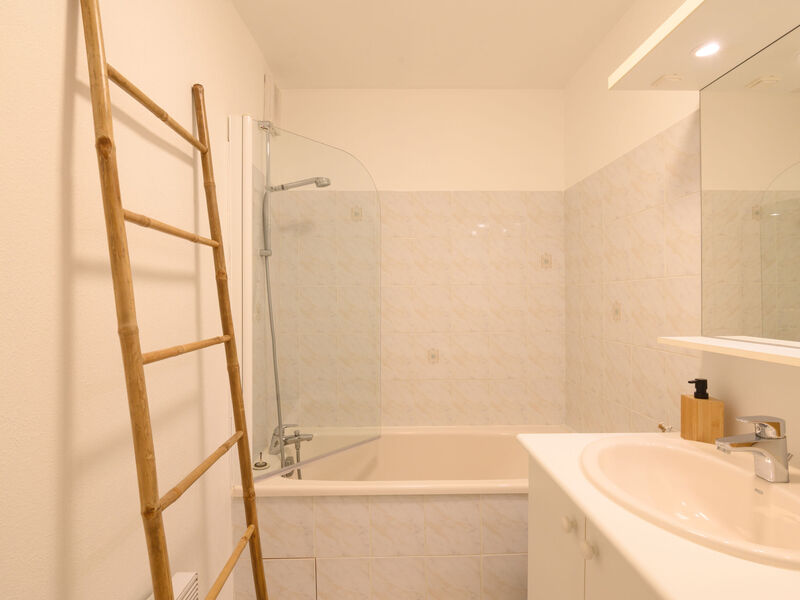 "Bosquets 2 pièces balcon", appartement 2-kamers 35 m2 op de 1e verdieping. Doelmatig en mooi ingericht: woonkamer met 1 divanbed (140 cm, lengte 190 cm), eethoek en TV (Flatscreen TV). Uitgang naar het balkon. 1 kamer met 1 2-pers bed (160 cm, lengte 200 cm). Kleine, open keuken (oven, afwasmachine, 2 inductiekookplaten, broodrooster, waterkoker, magnetron, elektrische koffiemachine, pads voor de koffiemachine (Tassimo) extra). Badkamer, aparte WC. Elektrische verwarming. Balkon 8 m2, op het noordwesten gelegen. Balkonmeubilair. Ter beschikking: wasmachine, strijkijzer, haardroger. Internet (Internet (WiFi), gratis). Parkeerplaats nr. 6. Niet rokers woning. Rookmelders. Bedindeling is flexibel. Er zijn meer slaapmogelijkheden beschikbaar dan het maximaal toegestane aantal personen dat echter niet mag worden overschreden. Aanbod door een particulier volgens art. 155, IV van CGI. 85194004909B5