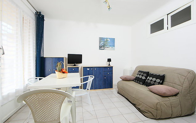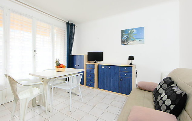 Appartement 2-kamers 32 m2 op de 3e verdieping. Doelmatig ingericht: woon-/eetkamer met 1 2-pers divanbed en TV (Flatscreen TV). Uitgang naar het balkon. 1 kleine kamer met 2 bedden. Uitgang naar het balkon. Open keuken (2-pits kookplaat, afwasmachine, magnetron). Douche, aparte WC. Elektrische verwarming, boiler (100 liter). Balkon 10 m2. Ter beschikking: wasmachine. Internet (Internet (WiFi), extra). Let op: rookmelders. 06029003780HT