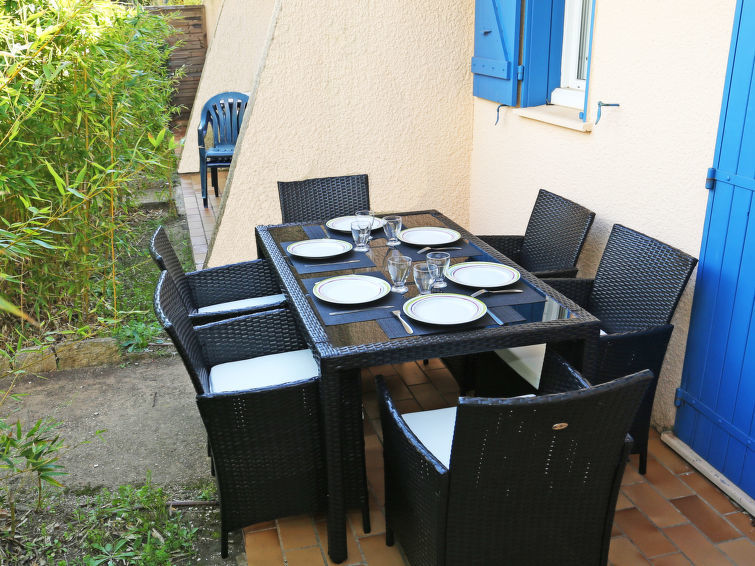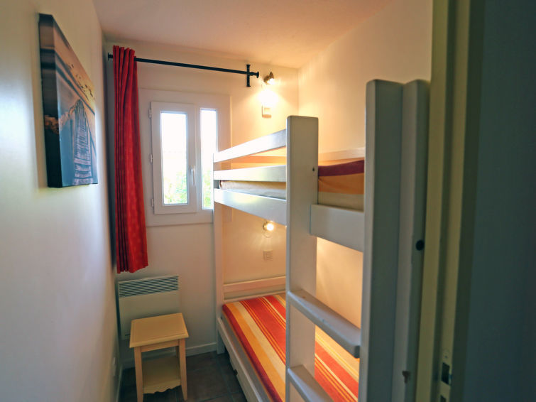 Appartement 3-kamers 35 m2, op de begane grond. Volledig gerenoveerd in 2020: woon-/eetkamer met 1 2-pers kastbed (140 cm, lengte 200 cm), eettafel en TV (Flatscreen TV), air-conditioning. Uitgang naar het terras. Cabine 3 m2, zonder kast met 1 x 2 stapelbedden (80 cm, lengte 190 cm). 1 kamer met 1 2-pers bed (1 x 140 cm, lengte 190 cm), douche, TV, Flatscreen TV en air-conditioning. Uitgang naar het terras. Open keuken (oven, afwasmachine, 3 inductiekookplaten, broodrooster, magnetron, diepvriezer, elektrische koffiemachine, combimagnetron). Badkamer, aparte WC. Elektrische verwarming. Terras 12 m2. Terrasmeubelen. Ter beschikking: wasmachine. Internet (Internet (WiFi), gratis). Parkeerplaats. Let op: maximaal 1 klein huisdier/hond toegestaan. TV alleen FR. Rookmelders. 830700010416W
