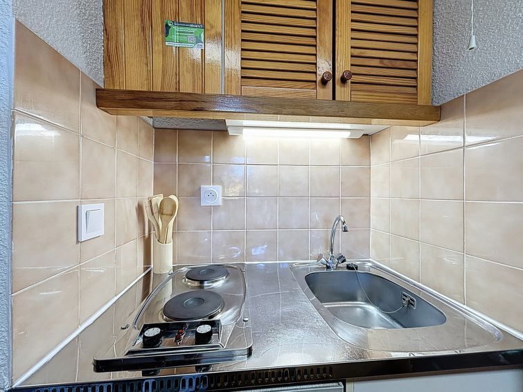 Studio 1-kamer 17 m2 op de 1e verdieping. Eetkamer met 1 opklapbed (140 cm, lengte 190 cm), TV (Flatscreen TV), elektrische verwarming. Uitgang naar het balkon, op het zuidwesten. Hal met 1 x 2 stapelbedden (80 cm, lengte 190 cm). Kookhoek (2-pits kookplaat, waterkoker, magnetron, elektrische koffiemachine, pads voor de koffiemachine (Senseo)). Douche/WC. Elektrische verwarming, boiler (100 liter). Klein balkon, op het zuidwesten gelegen. Balkonmeubilair. Uitzicht op de bergen. Niet rokers woning. Rookmelders. In plaats van een afgesloten slaapkamer bevinden sommige slaapgedeeltes zich in een open ruimte (galerij, nis, etc.). Bedlinnen, handdoeken, eindschoonmaak en alle energiekosten zijn inclusief. Aanbod door een particulier volgens art. 155, IV van CGI.