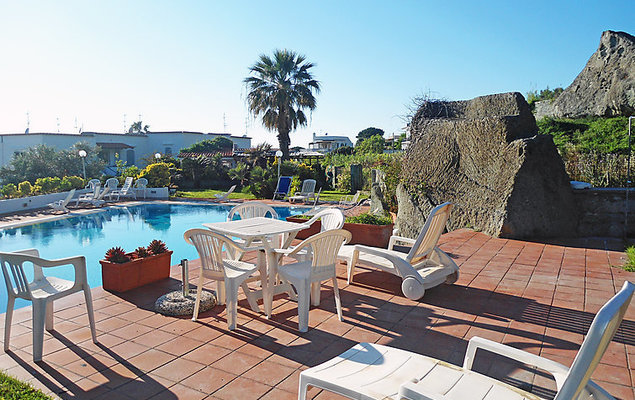 Forio: Mooi vakantiepark "La Roccia", omgeven door bomen en weiden. In de wijk Cuotto, 1 km van het centrum van Forio, zonnige ligging in een woonwijk, perfecte locatie: in het centrum en toch rustig gelegen, 750 m van zee, 750 m van het strand. Voor medegebruik: park (omheind), groot tuin (omheind) planten en bloemen, openluchtzwembad omheind (5 x 7 m, seizoensgebonden beschikbaarheid: 01.Jun.-15.Sep.). Buitendouche, tuinmeubelen. In het huis: Internet (WiFi). Schoonmaak op verzoek (extra). 100 m lange smalle toegangsweg tot aan het huis. Openbare parkeerplaatsen in de straat extra. Supermarkt, restaurant 200 m, veerboot "Forio" 3 km, zandstrand "Cetara" 750 m kiezelstrand 1 km, thermaalbad "Poseidon" 1 km. Attracties in de buurt: Ischia 5 km, Napoli, Sorrento, Amalfi, Positano, Capri. Let op: auto wordt niet aangeraden. De afgebeelde foto is slechts een voorbeeld. De woningen kunnen onderling van inrichting verschillen.