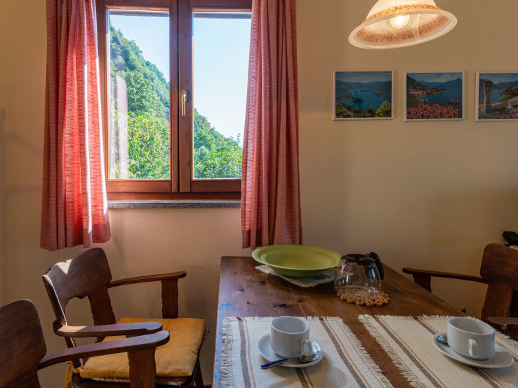 Rustieke huis "Arte e Cucina", 400 m boven zeeniveau, van 4 verdiepingen. 7 appartementen in de woning. In de wijk Travisa, 2.5 km van het centrum van Gravedona, aan de rand van de plaats, 50 km van het centrum van Como, 54 km van het centrum van Lecco, verhoogde ligging tegen een helling, 2.5 km van het meer, te midden van groen. Voor medegebruik: terrein, tuin op verschillende niveaus met planten, ligweide, openluchtzwembad (seizoensgebonden beschikbaarheid: 25.Apr.-03.Okt.) met trap. Onderhoud zwembad door de eigenaar/tuinman. In het huis: restaurant, Internet (WiFi). Trappenweg naar het huis. Winkel 500 m, supermarkt 3 km, bushalte 2.5 km, station "Como" 50 km, kiezelstrand 2.8 km, openluchtzwembad 3 km. Jachthaven 2.5 km, golfterrein (18 holes) 25 km. Let op: de eigenaar woont in hetzelfde huis.