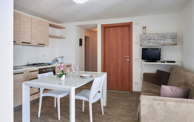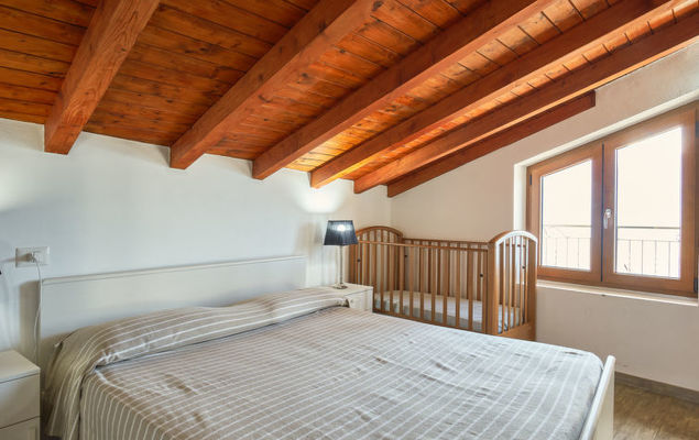 "Rustico Maria (DMA392)", huis 5-kamers 97 m2 op 3 verdiepingen, op verhoogde begane grond, op het zuiden gelegen. Gerenoveerd in 2012, doelmatig en modern ingericht: woon-/slaapkamer met 1 divanbed, eettafel en Sat-TV. Uitgang naar het terras. 1 kamer met 1 2-pers bed (160 cm). Open keuken (oven, afwasmachine, 4 kookpitten (vlammen), broodrooster, diepvriezer, elektrische koffiemachine). Douche/WC. Elektrische verwarming, air-conditioning. Bovenverdieping: (buitentrap) woon-/slaapkamer met 1 divanbed, eettafel, Sat-TV en verwarming. Uitgang naar het balkon. Open keuken (oven, afwasmachine, 4 kookpitten (vlammen), broodrooster, waterkoker, diepvriezer, elektrische koffiemachine). Douche/WC. 2e Verdieping: (wenteltrap) doorgangskamer met elektrische verwarming en air-conditioning. Uitgang naar het balkon. 1 kamer met 1 2-pers bed (160 cm). 1 kamer met 2 bedden. Aparte WC. Verwarming niet in alle ruimtes. 2 balkons. Balkonmeubilair. Mooi uitzicht op het meer. Ter beschikking: kinderstoel, kinderbed. Internet (Internet (WiFi), gratis). Let op: 2 huisdieren/honden toegestaan. Privé ingang. Geen interne verbinding tussen de aparte wooneenheden. CIR: 013239-CNI-00069