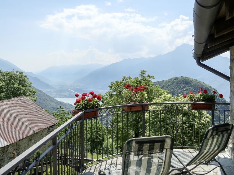 Rustieke Huis met 2 woningen "Baita dei Nonni", 950 m boven zeeniveau, omgeven door bomen. Beneden Bodone, in een gehucht met 8 huizen, 8 km van het centrum van Gravedona, 60 km van het centrum van Como, 61 km van het centrum van Lecco, verhoogde ligging tegen een helling, 8 km van het meer. Voor medegebruik: wild terrein (omheind), tuin op verschillende niveaus met planten, weide. 3 km lange rommelige, steile, smalle toegangsweg (250 m onverharde weg, bergweg). Trappenweg (20 treden) naar het huis. Parkeerplaats bij het huis op 20 m. Winkel 3 km, supermarkt 8 km, restaurant 3 km, station "Como" 60 km, kiezelstrand "Lido di Gravedona" 8 km, openluchtzwembad 8 km.