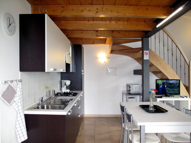 Huis in een rij 1-kamer 45 m2 op 2 verdiepingen. Licht, doelmatig en gezellig ingericht: woon-/eetkamer met schuifdeur met eettafel en Sat-TV. Uitgang naar de tuin, naar de zitplaats in de tuin. Open keuken (afwasmachine, Gasfornuis, 4 kookpitten (vlammen), broodrooster, magnetron, diepvriezer, elektrische koffiemachine). Douche/bidet/WC. Bovenverdieping: open galerij met 1 2-pers bed (160 cm). Open slaapnis met 2 bedden. Gas-verwarming (extra), air-conditioning (extra). Zithoek in de tuin, gazon 50 m2. Ligstoelen (2). Ter beschikking: kinderstoel, kinderbed tot 2 jaar. Internet (Internet (WiFi), gratis). Parkeerplaats (1 Auto). Let op: 1 huisdier/hond toegestaan. Privé ingang. Geen verplichte extra kosten ter plaatse te betalen. Bedlinnen, eindschoonmaak en alle energiekosten zijn inclusief. CIR: 013090-AGR-00001