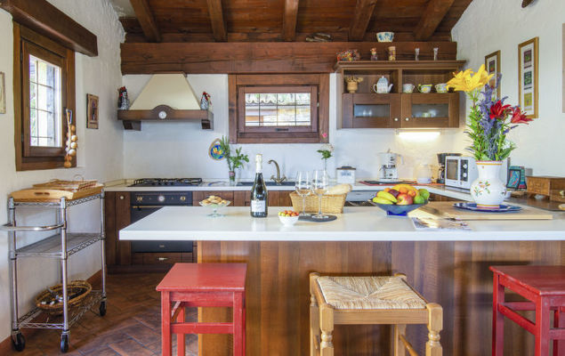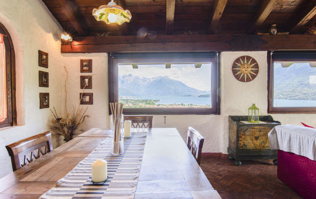Huis 3-kamers 140 m2 op 2 verdiepingen. Smaakvol en gezellig ingericht: 1 kamer met Kleedkamer met 1 2-pers bed (160 cm). Uitgang naar de tuin. 1 kamer met 2 bedden en 1 slaapplaats. Bad/douche/WC. Bovenverdieping: groot woon-/eetkamer met panoramavenster met eettafel, Sat-TV en DVD. Uitgang naar het terras. Open keuken (oven, afwasmachine, 4 kookpitten (vlammen), broodrooster, waterkoker, magnetron, elektrische koffiemachine). Uitgang naar het terras. Gas-verwarming (extra). Klein terras overdekt, 2 groot terrassen, op het westen gelegen. Terrasmeubelen, barbecue, ligstoelen (5). Panoramazicht op het meer. Ter beschikking: wasmachine, strijkijzer, kinderstoel, kinderbed. Internet (Internet (WiFi), gratis). Let op: niet rokers woning. CIR:013090-CNI-00031