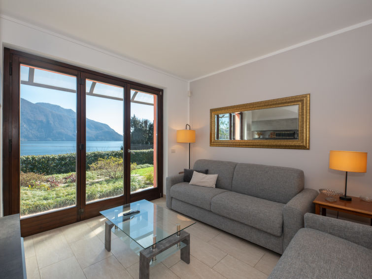 "Anna", appartement 3-kamers 70 m2, op de begane grond. Doelmatig en gezellig ingericht: woon-/eetkamer met panoramavenster met 1 2-pers divanbed en TV. Uitgang naar de zitplaats in de tuin. 1 2-pers. kamer met aparte WC. Uitgang naar de tuin. 1 kleine kamer met 1 divanbed. Uitgang naar de tuin. Keuken (4-pits kookplaat, oven, afwasmachine, waterkoker, magnetron, elektrische koffiemachine). Douche/bidet/WC. Gas-verwarming. Verwarming alleen beschikbaar van 01.10. tot 30.04. Zithoek in de tuin gedeeltelijk overdekt, tuin. Terrasmeubelen. Mooi uitzicht op het meer. Ter beschikking: wasmachine, haardroger. Internet (Internet (WiFi), gratis). Rookmelders, brandblusser. IT103033C2FUEF2BDD
