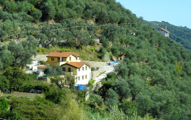 Kleine, mooi residentie "Clara", bouwjaar 2014, omgeven door bomen en wijngaarden. 4 appartementen in de woning. In het gehucht Canneto, 3 km van het centrum van Prelà, 5 km van het centrum van Dolcedo, 12 km van het centrum van Imperia, geïsoleerde ligging tegen een helling, 15 km van zee, te midden van groen. Voor medegebruik: wild terrein 1.200 m2 met bomen, openluchtzwembad (verhoogd) niervormig (8 x 4 m, 120 cm diepte, seizoensgebonden beschikbaarheid: 01.Jan.-31.Dec.). Buitendouche. In het huis: bergruimte voor fietsen. 50 m lange steile toegangsweg tot aan het huis (rolstoelhelling). Parkeerplaats (beperkt aantal) bij het huis. Winkel 3 km, supermarkt 12 km, restaurant 3 km, station "Porto Maurizio" 15 km, zandstrand "Imperia - Porto Maurizio" 15 km. Groepen jongeren uitsluitend op aanvraag.