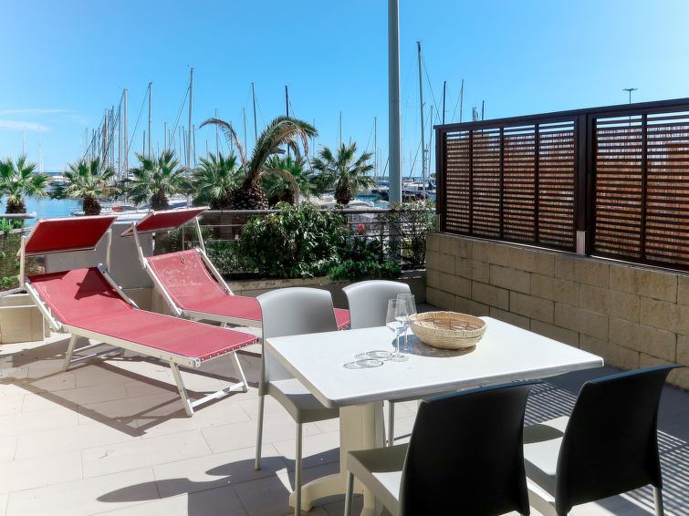 "Azzurra (SNM180)", appartement 2-kamers 75 m2, op de bovenverdieping. Modern en stijlvol ingericht: woon-/slaapkamer met 1 2-pers divanbed (140 cm), eettafel en TV. Uitgang naar het terras. 1 kamer met 1 2-pers bed (160 cm). Open keuken (oven, afwasmachine, 4 inductiekookplaten, broodrooster, waterkoker, diepvriezer, elektrische koffiemachine). Douche/bidet/WC. Elektrische verwarming, air-conditioning. Terras. Terrasmeubelen, ligstoelen (2). Uitzicht op zee en de haven. Ter beschikking: wasmachine, strijkijzer, kinderstoel, kinderbed. Internet (Internet (WiFi), gratis). Let op: niet rokers woning. Maximaal 1 huisdier/hond toegestaan. Privé ingang. CITRA: 008056-LT-0139