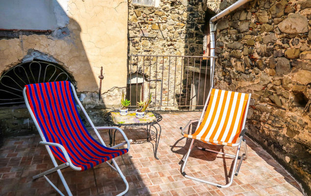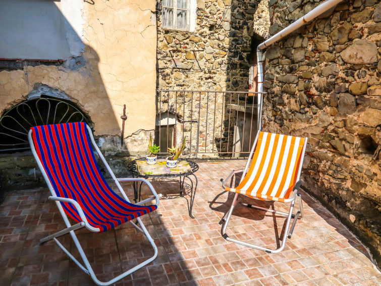 "Casa del Pittore", huis in een rij 6-kamers 150 m2 op 2 verdiepingen. Rustiek en antiek ingericht: open woon-/slaapkamer met 1 2-pers divanbed (140 cm). Woon-/eetkamer. 1 kamer met 1 bed (80 cm). 1 kamer met 1 bed (120 cm). 1 kamer met 2 slaapplaatsen (2 x 80 cm, lengte 180 cm). Douche/WC. Souterrain: woon-/eetkamer met eettafel en TV. Uitgang naar het terras. Keuken (2-pits kookplaat, oven, broodrooster, waterkoker, magnetron, elektrische koffiemachine) met kleine eettafel, open haard (alleen decoratie). Bad/bidet/WC. Geen stookmogelijkheid. Terras 30 m2. Terrasmeubelen, ligstoelen (2), bergruimte. Mooi uitzicht op de bergen en het landschap. Ter beschikking: wasmachine, kinderstoel, kinderbed. Internet (Internet (WiFi), gratis). CITRA: 008016-LT-0006